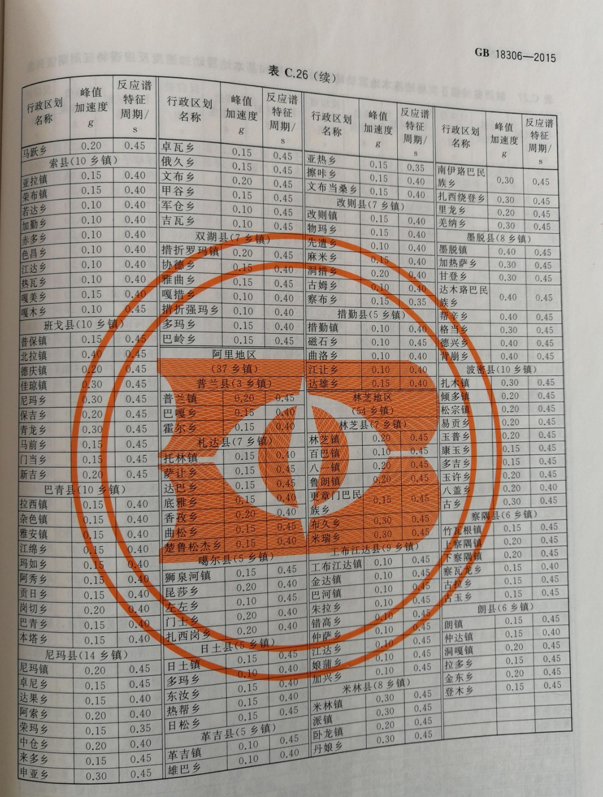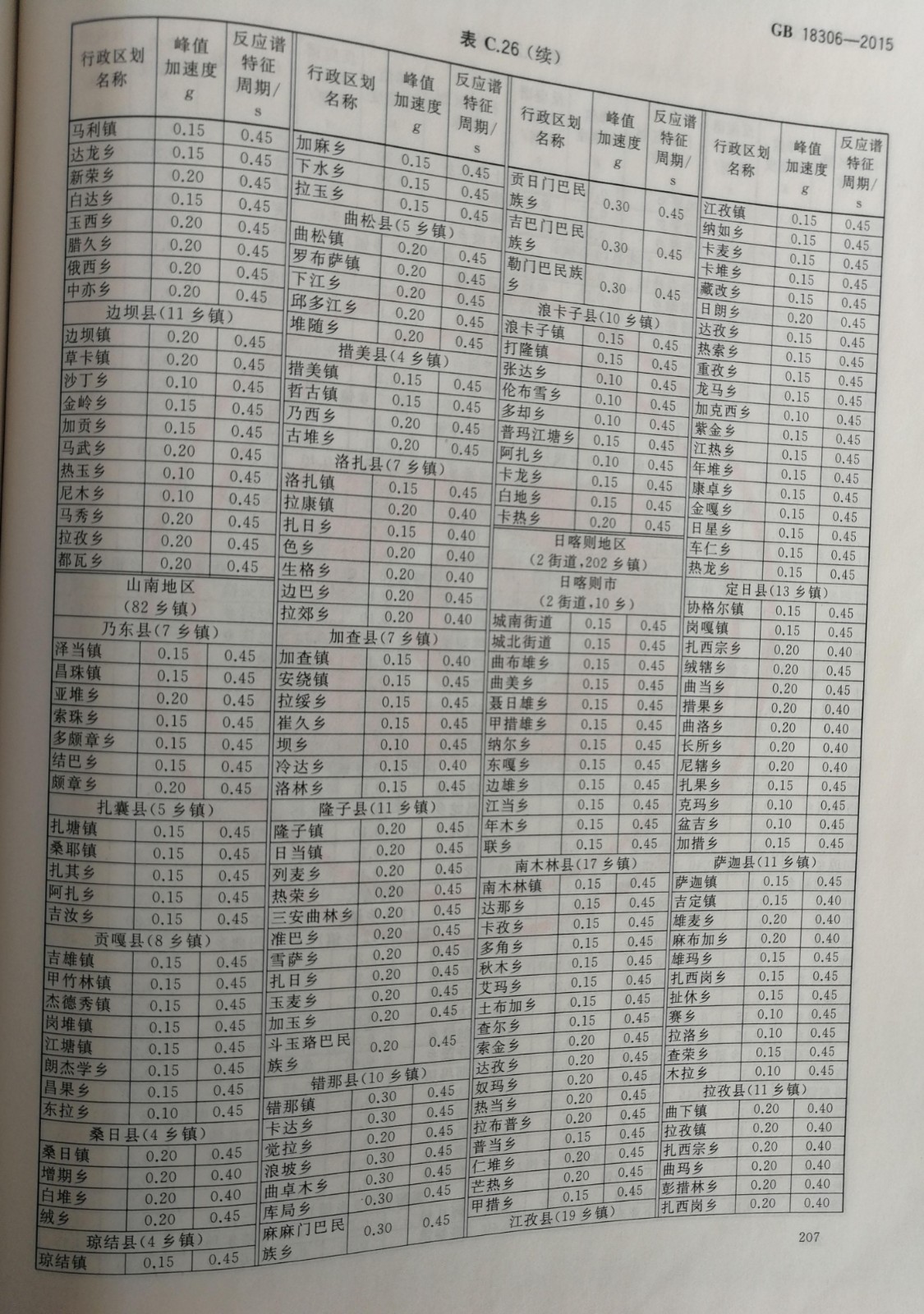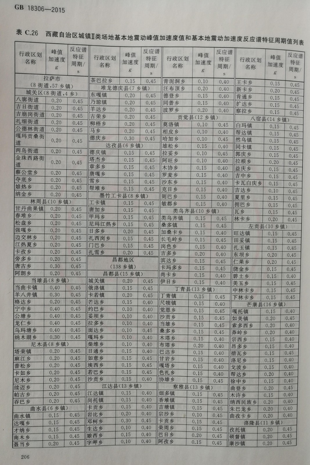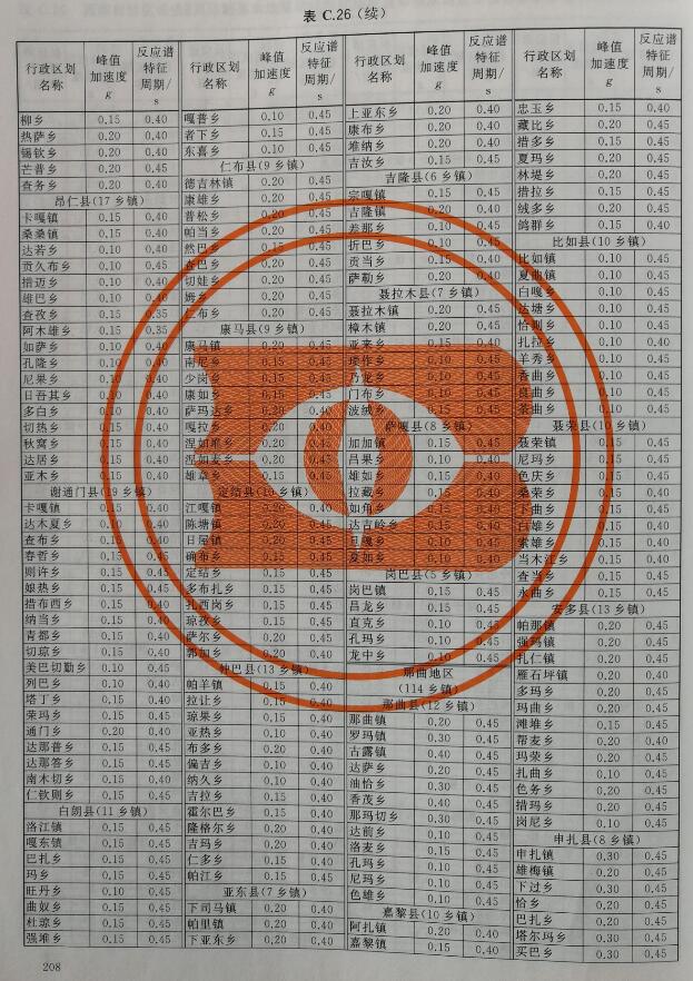 西藏自治区各行政区划地域基本峰值加速度及反应谱特征周期
